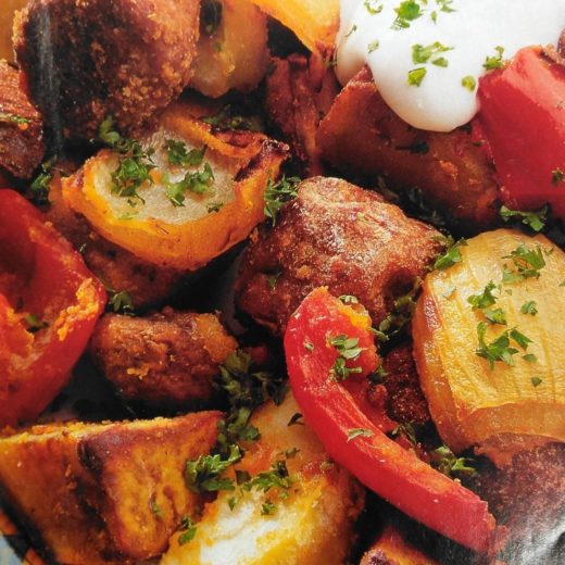With wet fingers, squeeze walnut- sized balls of sausage meat out of the sausages and drop into the roasting dish with the vegetables. Bake uncovered in a hot oven for 35-45 minutes, or until the kumara is tender. Turn occasionally during cooking, top with parsley and serve piping hot. Serves 6-8.